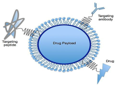 Above Diagram displays a solid lipid nanoparticle (SLN). There is only one phospholipid layer because the interior of the particle is solid. Molecules such as antibodies, targeting peptides, and drug molecules can be bound to the surface of the SLN.
