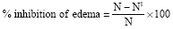 Where: N = Volume of edema in control; N1= Volume of edema in treated group