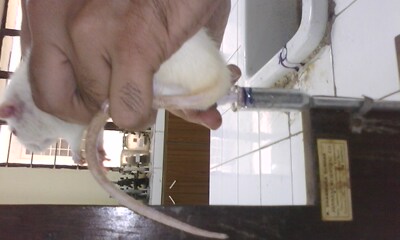 A 90 d old Wistar rat bred and raised in the Animal Facility of the Department of Pharmacology, Vel’s college of Pharmacy was used in this study. They were maintained under constant automatically control 12 h/12 h light/dark cycle (lights on from 07.00 a. m. to 07.00 p. m.) and environmental temperature (23±2 °C). Rat chow and tap water were provided ad libitum in standard propylene cages. Cage cleaning consisted of a daily change of sawdust bedding. At the end of the study, animals were sacrificed with an overdose of Chloral hydrate. Due to the painful condition imposed on the animals, the number of subjects used was restricted to the minimum that allowed reliable statistical analysis of the results. All procedures were submitted to and approved by the Ethics Committee and followed the recommendations of the Research and Ethics Committee. Each group was composed of 6 animals [6, 7].