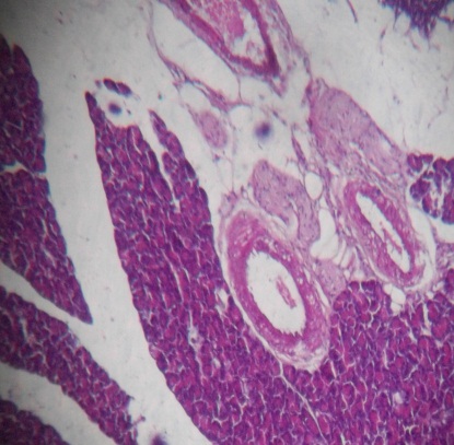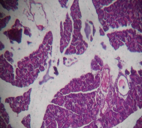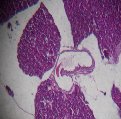 | Fig. 22: Histopathology slide photos of Rasa Mezhugu-High dose treated animals’ Pancreas | Fig. 23: Histopathology slide photos of Rasa Mezhugu-Low dose treated animals’ Pancreas | Fig. 24: Histopathology slide photos of Rasa Mezhugu-Middle dose treated animals’ Pancreas |