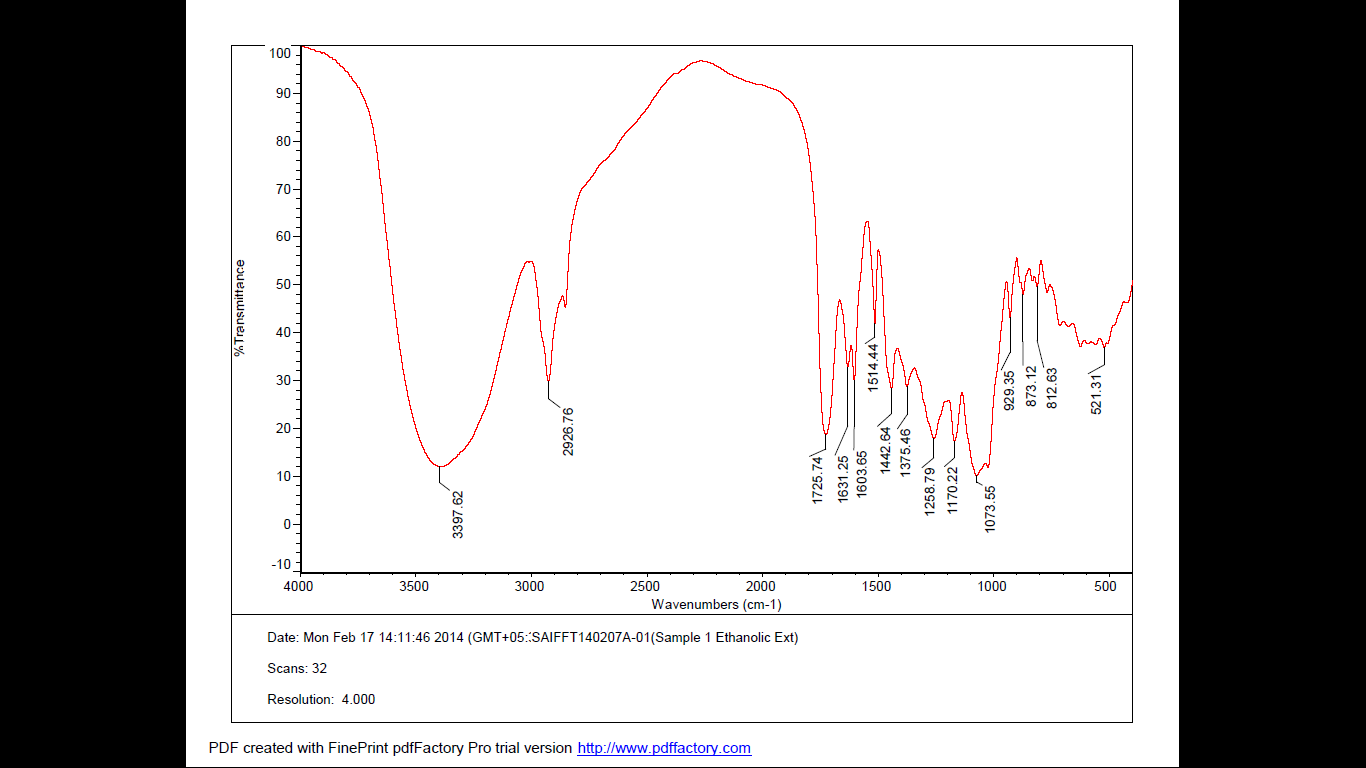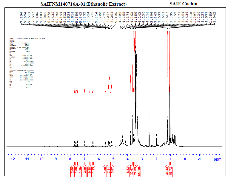 The dried and powdered materials of the above were subjected to extraction in soxhlet apparatus, using a different solvent with increasing polarity ie, petroleum ether, chloroform, methanol and ethanol. Evaporation of solvent from the extracts was done by rotary vaccum evaporator. A sticky mass was obtained after evaporation of this solvent. The extracts were stored at 10 °C till further use. The plant extract was undergone different separation technique viz precloumn, HPTLC, etc for isolation of pure compound. Thereafter the pure compound was subjected to IR, NMR, LC-MS for structural elucidation.