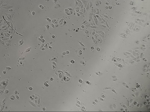 | Fig: 3: (a) Untreated HeLa cells | Fig: 3: (b) Chloroform extract treated cells |