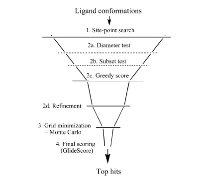 Fig. 3: Glide docking funnel, showing the glide docking hierarchy