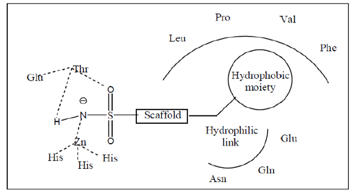 Fig. 5: Pharmacophore requirement of CA inhibitors in the CA enzymatic active site