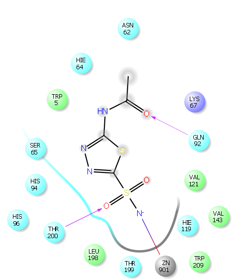 Fig. 11: 2D ligand-protein binding interaction of AZA at CA XII binding site