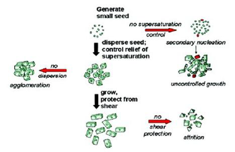 This technique involves preparing a solution of drug followed by its emulsification in another liquid that is a nonsolvent for the drug. Evaporation of the solvent leads to precipitation of the drug. Crystal growth and particle aggregation can be controlled by creating high shear forces using a high-speed stirrer