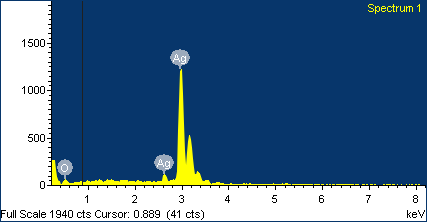 Conclusion: The synthesised silver nanoparticles have been characterised by UV-vis, SEM-EDAX and XRD to determine the sizes and shapes of the silver nanoparticles.