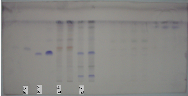 Fig. 2: TLC chromatogram of glycyrrhetic acid and solasodine after derivatization