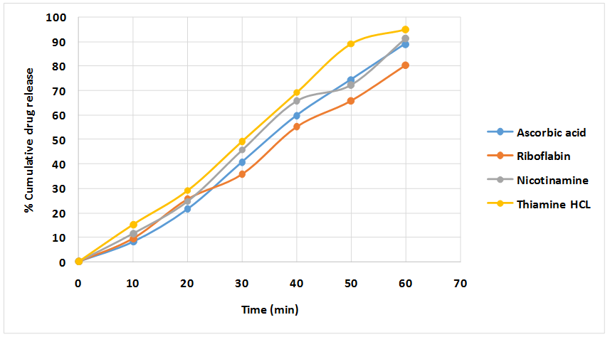Fig. 1: In vitro drug release profile of formulation 4 (F4) of chewable multivitamin tablet