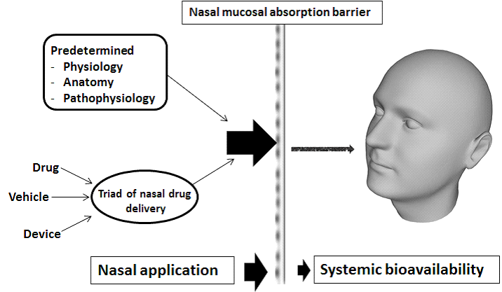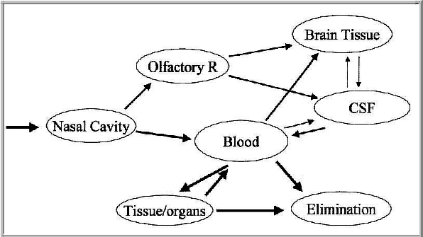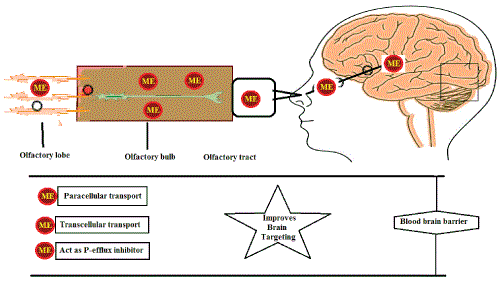 It is important to examine the pathway/mechanisms involved prior to addressing the possibilities to improve transnasal uptake by the brain [9, 10]. The olfactory region is known to be the portal for a drug substance to enter from nose-to-brain following nasal absorption. Thus, transport across the olfactory epithelium is the predominant concern for brain-targeted intranasal delivery shown in fig. 2.