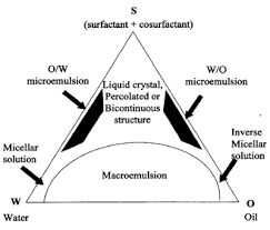 Fig. 8: Pseudo-ternary phase diagram of oil, water and surfactant showing microemulsion region