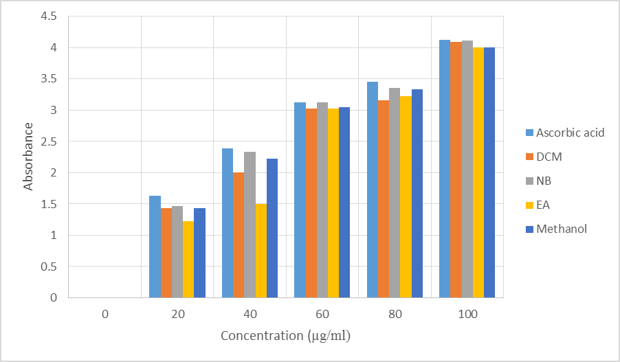 Results: The n-butanol extracts showed significant antimicrobial activity against all the strains as compared to the standard drug. The extracts also showed antioxidant activity against the standard ascorbic acid.