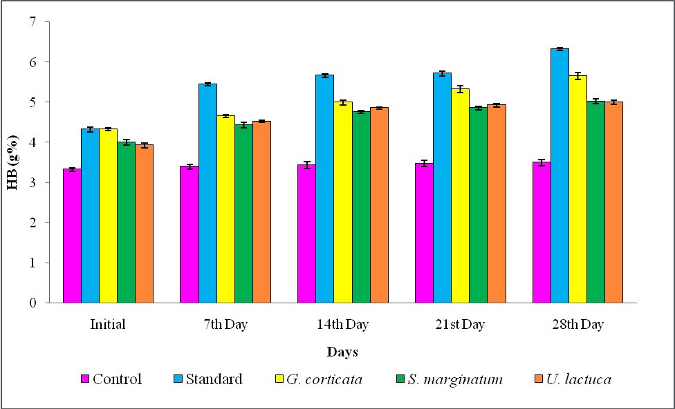 Fig. 3: The Hb value of Cyprinus carpio after seaweed extracts treatment