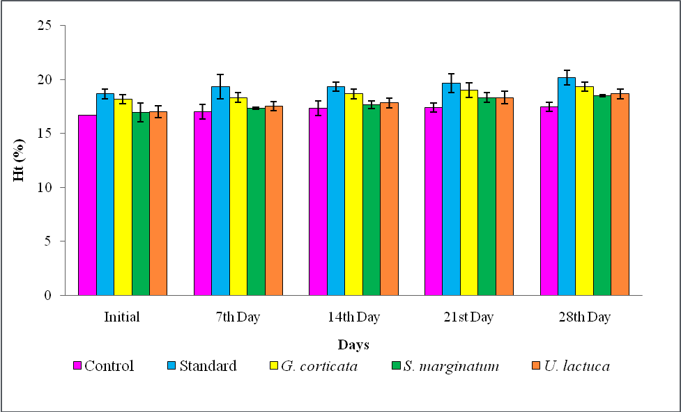 Fig. 4: The Ht value of Cyprinus carpio after seaweed extracts treatment
