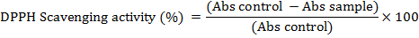 The DPPH assay was done according to the method of [17] with some modifications. The radical scavenging and antioxidant potential of the plant extracts were determined by the ability of plant extracts to scavenge the stable free radical DPPH and convert it into Diphenyl picryl hydrazine. The degree of decolourization from purple to yellow color was measured spectrophotometrically at 517 nm. Different concentrations (100 to 600 μg/ml) of Aloe vera extract and the biogenic synthesized Se nanoparticles were separately mixed with 3 ml of 0.1 mmol DPPH and incubated in dark for 15 min. Rutin was used as standard and DPPH methanol reagent without sample was used as control. The reaction mixture was mixed well and left in dark at room temperature for 30 min. The absorbance was measured spectrophotometrically at 517 nm. The scavenging ability of the plant extract was calculated using this equation: