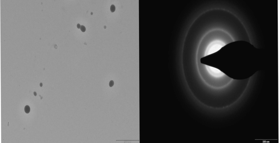 Results shows that particles are crystalline in nature as diffraction ring appeared which correspond to diffraction angle of (111, 121 and 311).