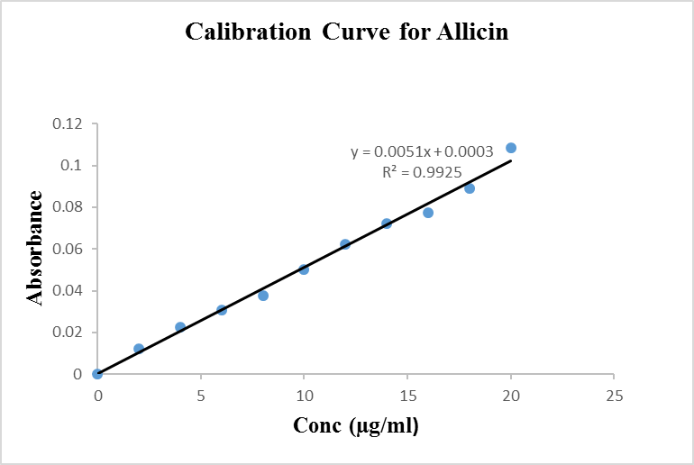Preparation of standard calibration curve of Allicin in phosphate buffer pH 7.4 [3]