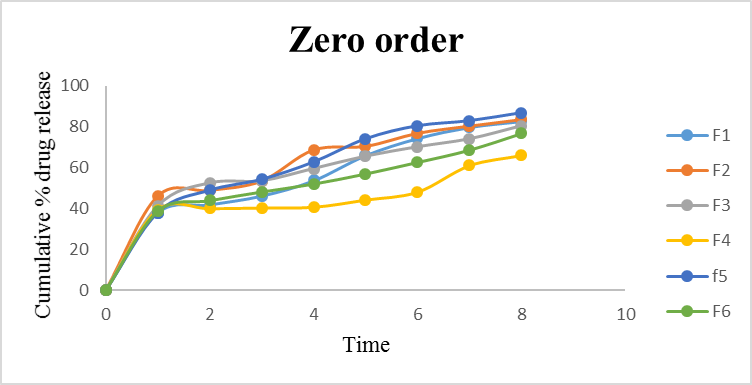 Fig. 5: Plot showing zero order kinetics of 6 formulation