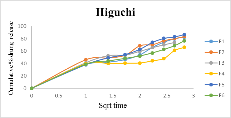 Fig. 6: Plot showing higuchi model of 6 formulation
