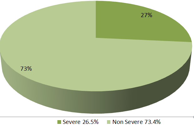 In this study, spontaneously reported adverse drug reactions were evaluated for a period of 6 mo, with emphasis on serius ADRs. Of the total adverse drug reactions reported, 17(26.5%) were serious. This shows that severe ADRs are a significant proportion of the ADR burden which is supported by a study conducted by Lukshmy M Hettihewa. et al. [9] who reported in their study that severe adverse drug reactions were 31% of all ADRs reported.