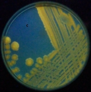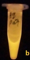 Fig. 1: [a] Purified bacterium observed under daylight (b) Purified bacterium observed u. v daylight