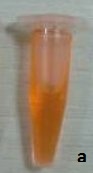 Fig. 12: [a] Bright orange pigment extracted with acetone, [b] pigment fluoresced bright, [c] Yellow orange under long wavelength of u. v light
