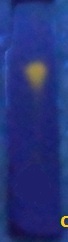 Thin layer chromatography of the crude pigment was extracted with acetone and purified using silica gel as absorbent and solvent system chloroform: ethyl acetate (3:1), gives one bright orange spot of Rf value 0.55 which fluoresced orange yellow under light. [fig. 12A]. and named as intracellular fluorescent pigment (IOFP).
