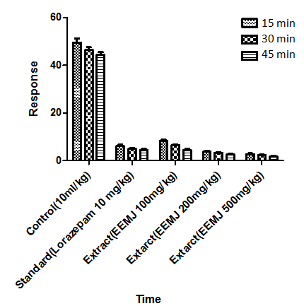 | Extract | 1)EEMJ | 100 mg/kg | 8.400±0.510 |
