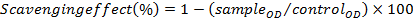 The reaction mixture (1.0 ml) consist of 100 μl of 2-deoxy-Dribose (28 mmol in 20 mmol KH2PO4-KOH buffer, pH 7.4), 500 μl of the extract of different concentration, 200 μl EDTA (1.04 mmol) and 200 μl FeCl3 (1.0 mmol), 100 μl of H2O2 (1.0 mmol) and 100 μl ascorbic acid (1.0 mmol) which is incubated at 37 °C for 1 h. 1.0 ml of thiobarbituric acid (1%) and 1.0 ml of trichloroacetic acid (2.8%) were added and incubated at 100 °C for 20 min. After cooling, absorbance is measured at 532 nm [17]. KH2PO4 buffer used as a blank. Quercetin can be used as a positive control. Percentage scavenging of hydroxyl radical was calculated as per following formula-