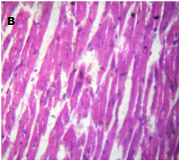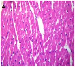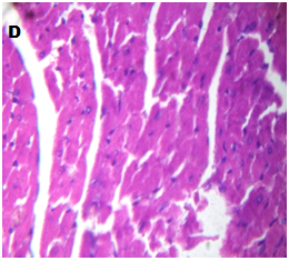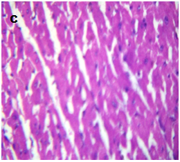 Fig. 3: Effect of ethanolic extract of Allium cepa aerial leaves on Histopathological changes in rat myocardial tissue (H and E Stain, 450X)