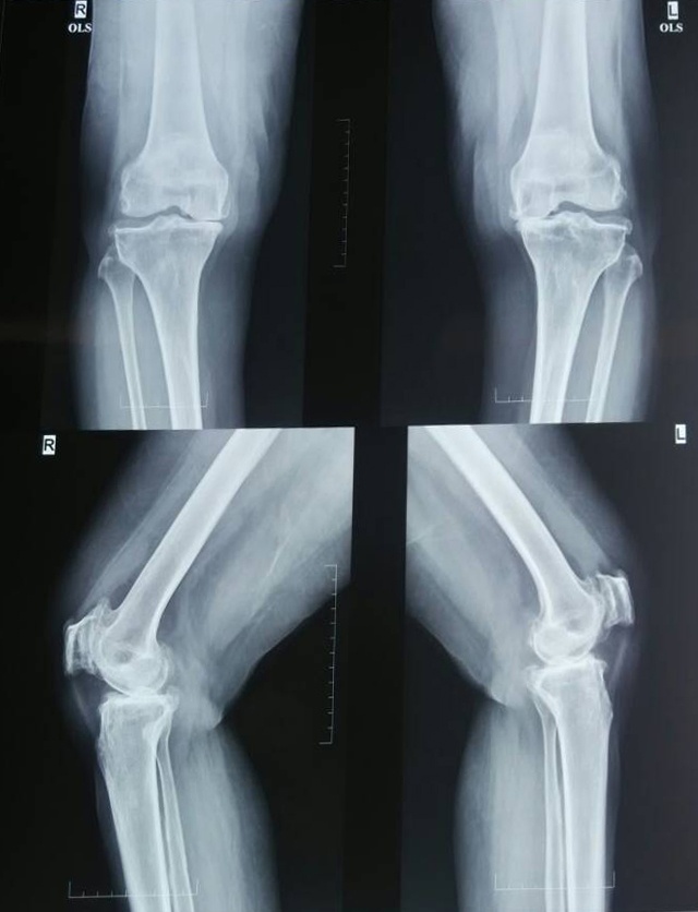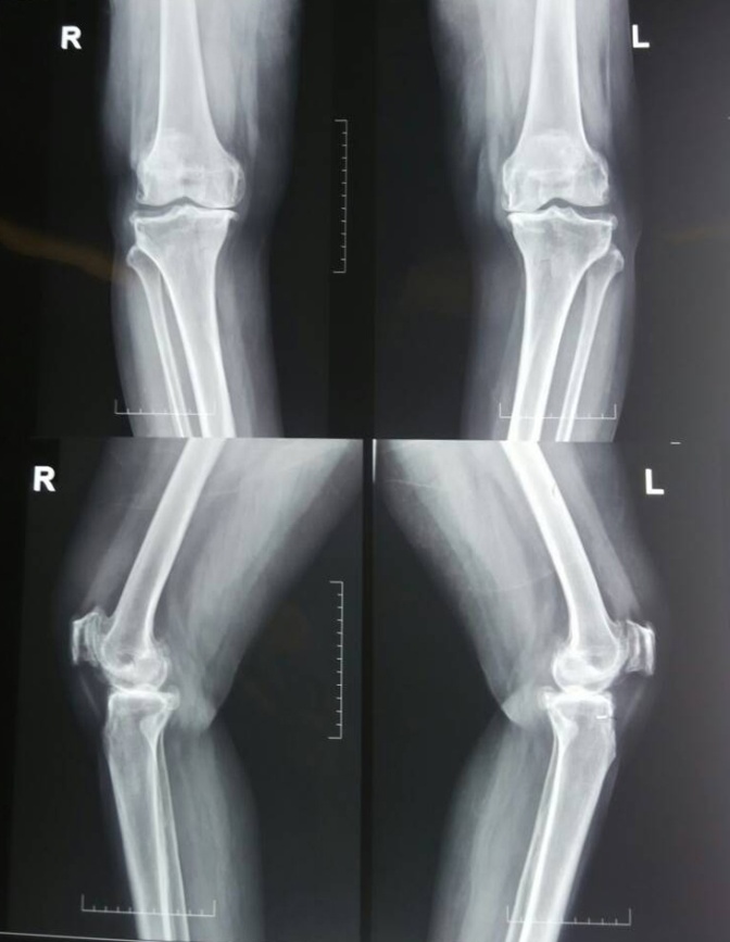 X-Ray 3: The anteroposteiror and lateral view of the knee joint before and after treatment with S-adenosyl methionine