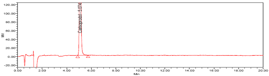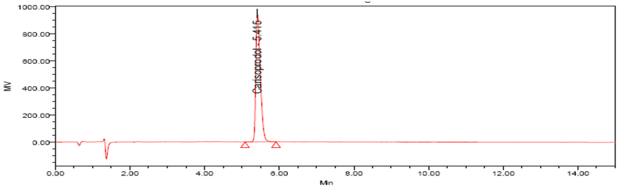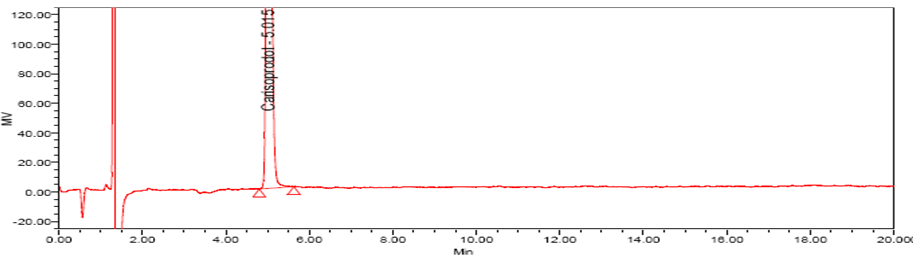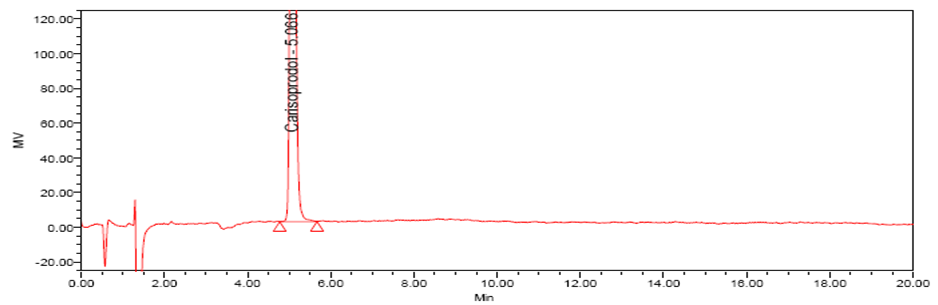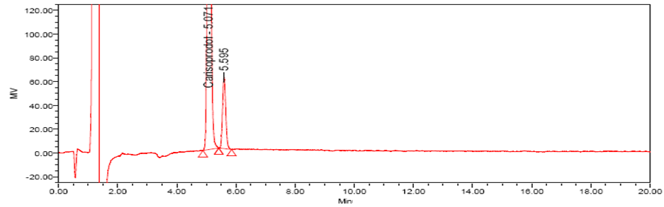 Fig. 1: A representative chromatogram for carisoprodol concentration optimized to 5 mg/ml