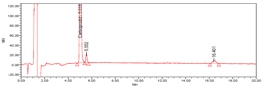 Fig. 6: A representative chromatogram of an accuracy 120% solution exhibit carisoprodol peak