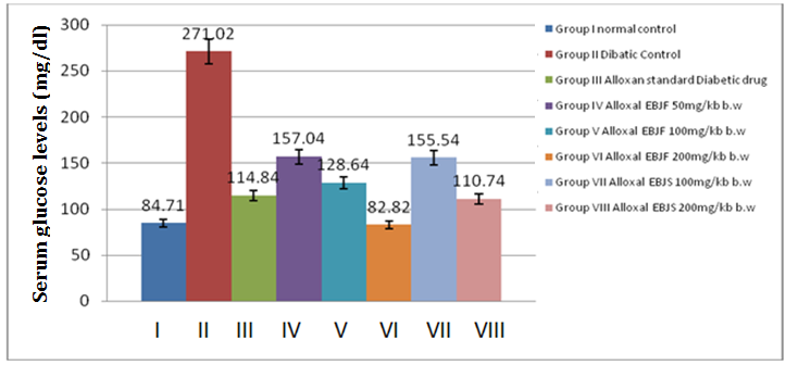Fig. 1: Effect of Eriobotrya japonica fruits and seeds on serum glucose levels in alloxan-induced diabetic rats