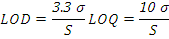 The limit of quantification (LOQ) is the lowest amount of analyte in a sample that can be determined with acceptable precision and accuracy. The LOD and LOQ were determined by using following formulae.