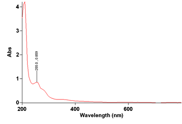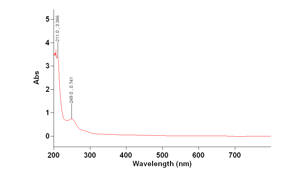 Spectrophotometric method: The λmax was determined by scanning one of the solutions over the range of 200-800 nm by using UV-Visible spectrophotometry and λmax was found to be 249 nm in methanol.