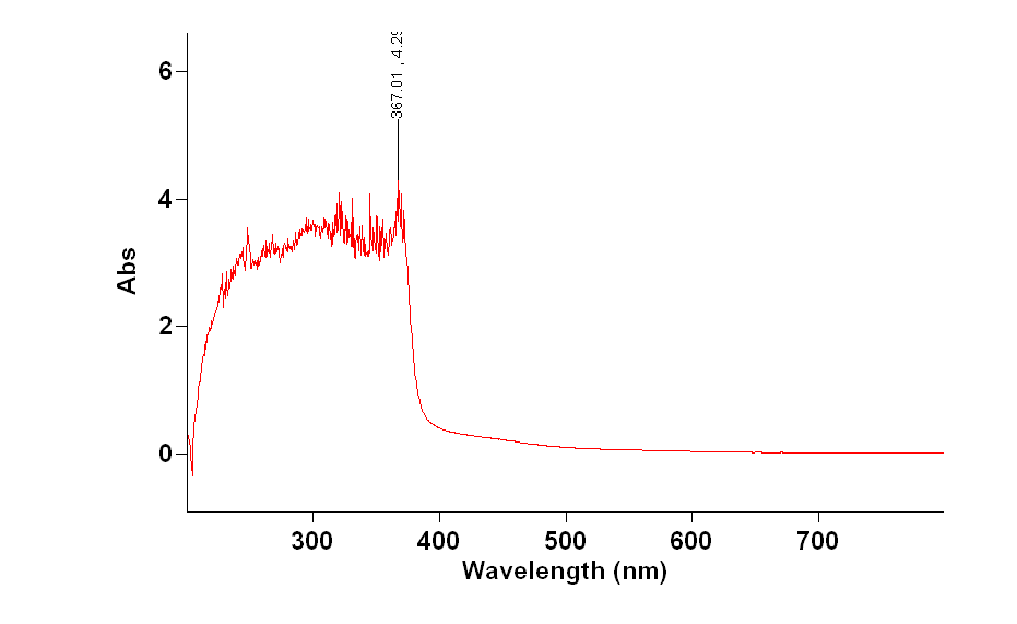 Spectrophotometric method: The λmax was determined by scanning one of the solutions over the range of 200-800 nm by using UV-Visible spectrophotometry and λmax was found to be 367 nm in 0.1N Sodium hydroxide.