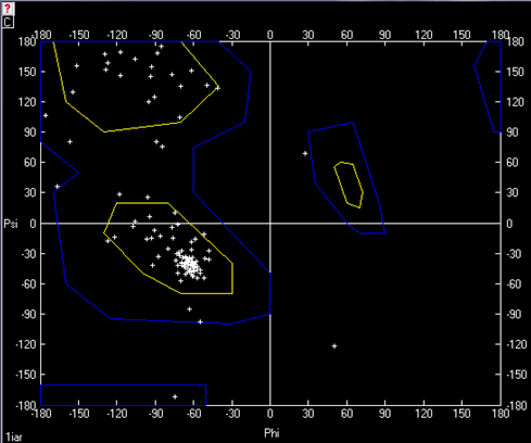 The protein validation was carried out in Swiss PDB viewer by Ramachandran plot analysis. The stereo chemical aspects were considered for analyzing protein.