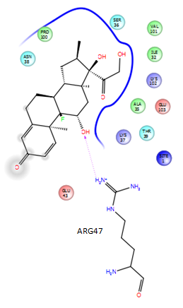 | Dexamethasone | -3.028 | -27.868 | ARG47 | 1 hydrogen bonding interaction | -23.534 |