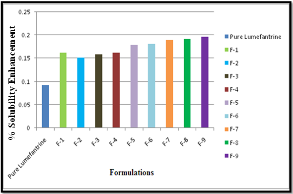 Fig. 1: Comparison of solubility of pure drug with formulation F1 to F9
