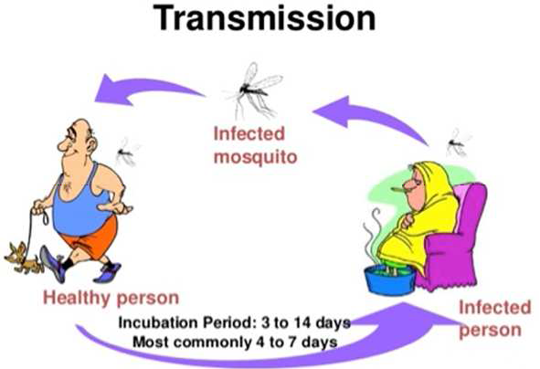 The Dengue virus is present in the blood of the patient. Suffering from Dengue fever. Whenever an aedesmosquitoes bites a patient of dengue fever, it sucks blood and, the dengue virusis enters into its body. The virus undergoes further development of in the body of the mosquito for a few days. When the virus containing mosquito bites a normal human being (Healthy person), the virus is injected into the Healthy person body and he/she becomes infected and can develop the symptoms of dengue fever [1].