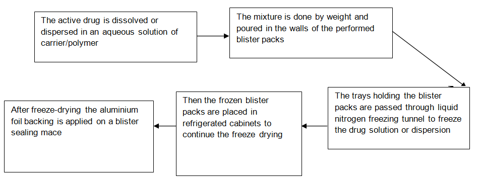 Lyophilisaton is the process in which water is sublimed from the product after it is frozen. This technique creates an amorphous porous structure that can dissolve rapidly. A typical procedure involved in the manufacturing of FDT using this technique is mentioned here [16]. The freeze-drying technique has demonstrated improved absorption and increase in bioavailability. The major disadvantages of lyophillisation technique are that it is expensive and time-consuming; fragility makes conventional packaging unsuitable for these products and poor stability under stressed conditions [17, 18].