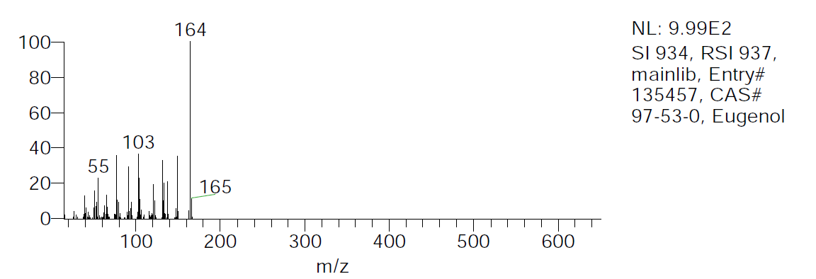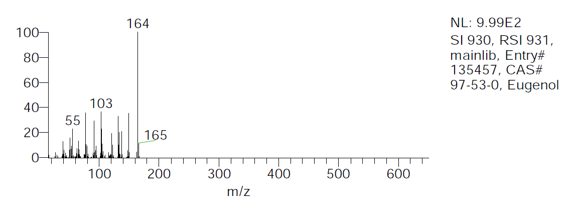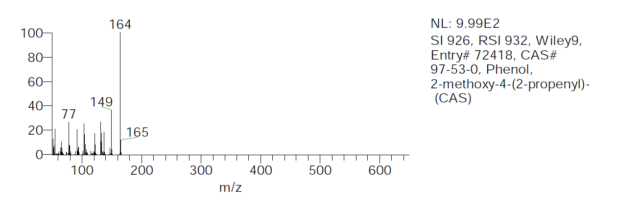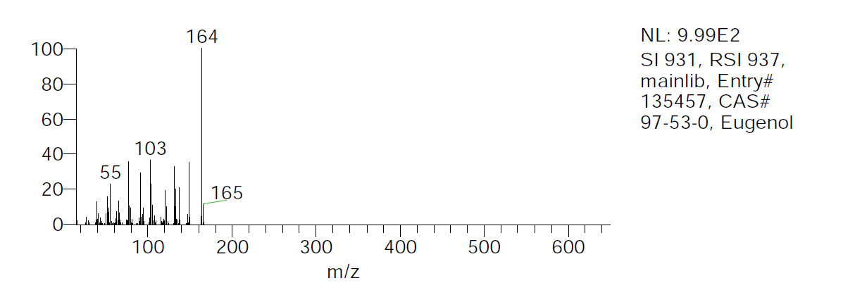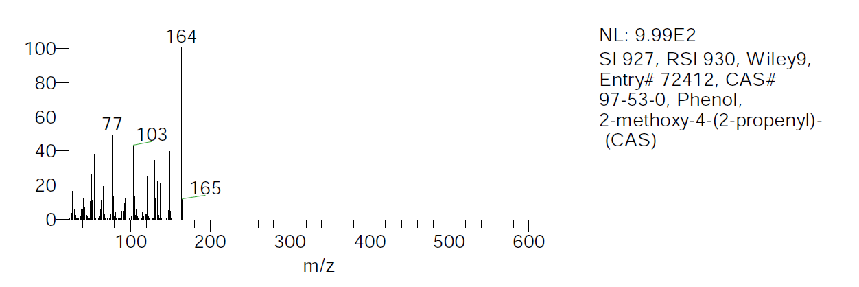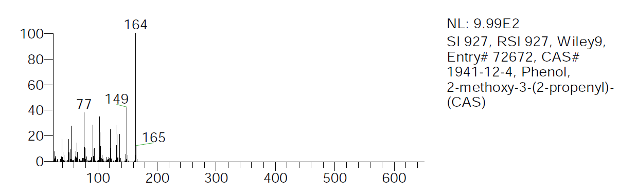 | 2 | Eugenol | C10H12O2 | 164 | 15.36 | 17.01 | 29.37 | 35.04 | 6.95 | 21.24 |