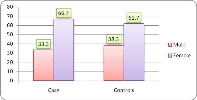 Sharghi N et al., carried out a clinic-based case-control study on environmental exposure to Toxocaraas a possible risk factor for asthma were found that female (53.7%) and male (46.3%) were of asthmatic and female (50.2%) male (49.8%) were non asthmatic [13]. In our study out of 90 children there were (66.7%) asthmatic females and (33.3%) males and non asthmatic females (61.7%) and males (38.3%), the females were more exposed to asthma than males