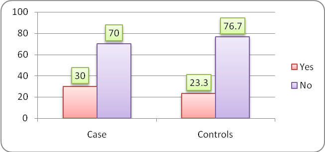 The collected data was entered in Microsoft excel 2007 and results are analyzed using Epi info. Odds ratio will be calculated to know the strength of association. chi square test will be calculated to the significance.