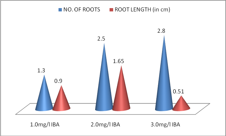 Graph 3: Effect of Auxin (IBA) on root induction from isolated shoots of Gymnema sylvestre R. Br