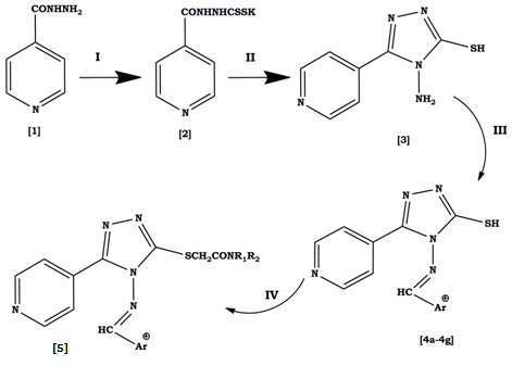 Synthesis of 4-[substituted phenyl)-methylene]-amino-3-(N-substituted-carboxamidmethyl thio)-5-(pyridine-4-yl)-4H-1,2,4-triazoles