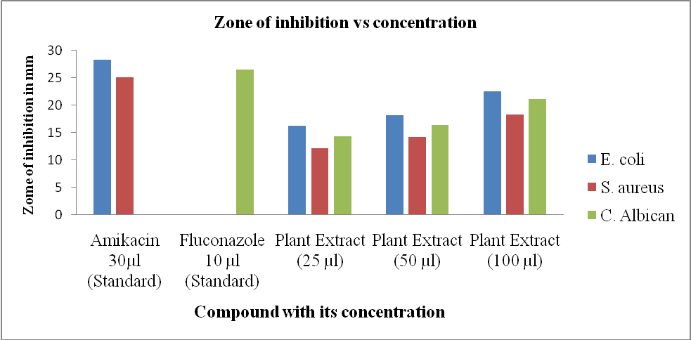 Fig. 1: Zone of inhibition vs concentration