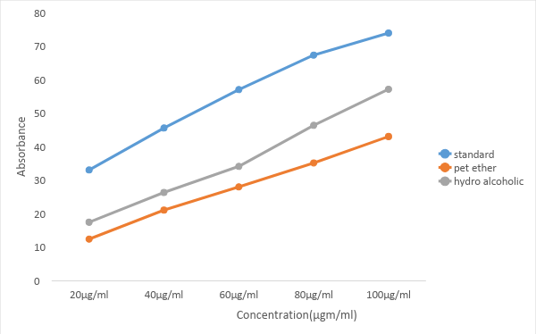 | 03 | Hydro alcholic Extract | 30.31±0.32 | 35.47±0.017 | 42.06±0.014 | 47.51±0.032 | 54.32±0.43 |