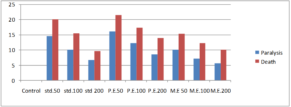 | Groups | Dose (mg/ml) | Time for paralysis(min) | Time for death (min) |